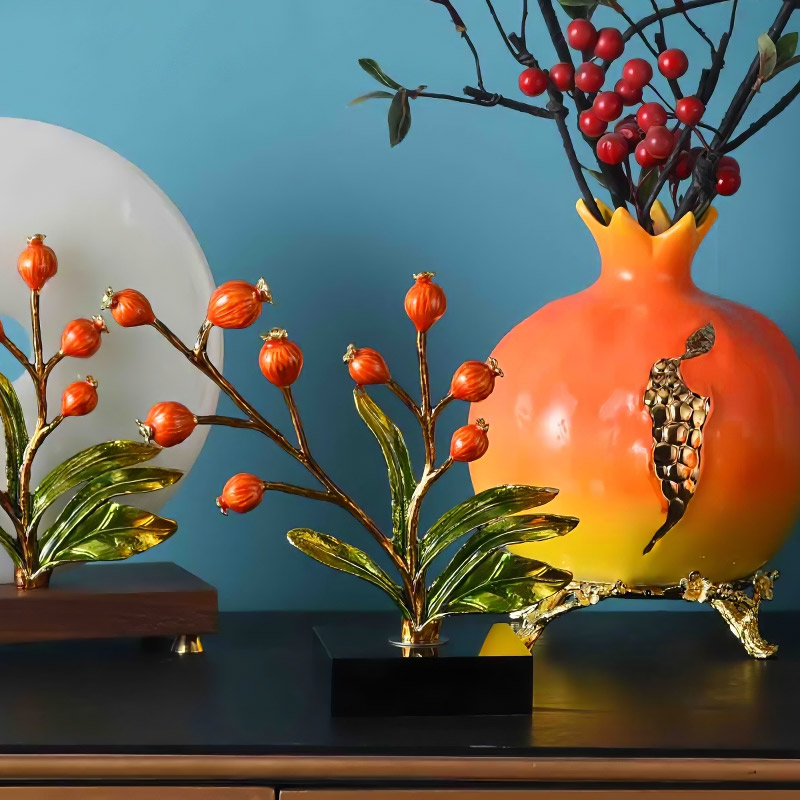 रातो तामचीनी अनारको रूख घरमा गरम गर्ने सजावटी गहनाहरू